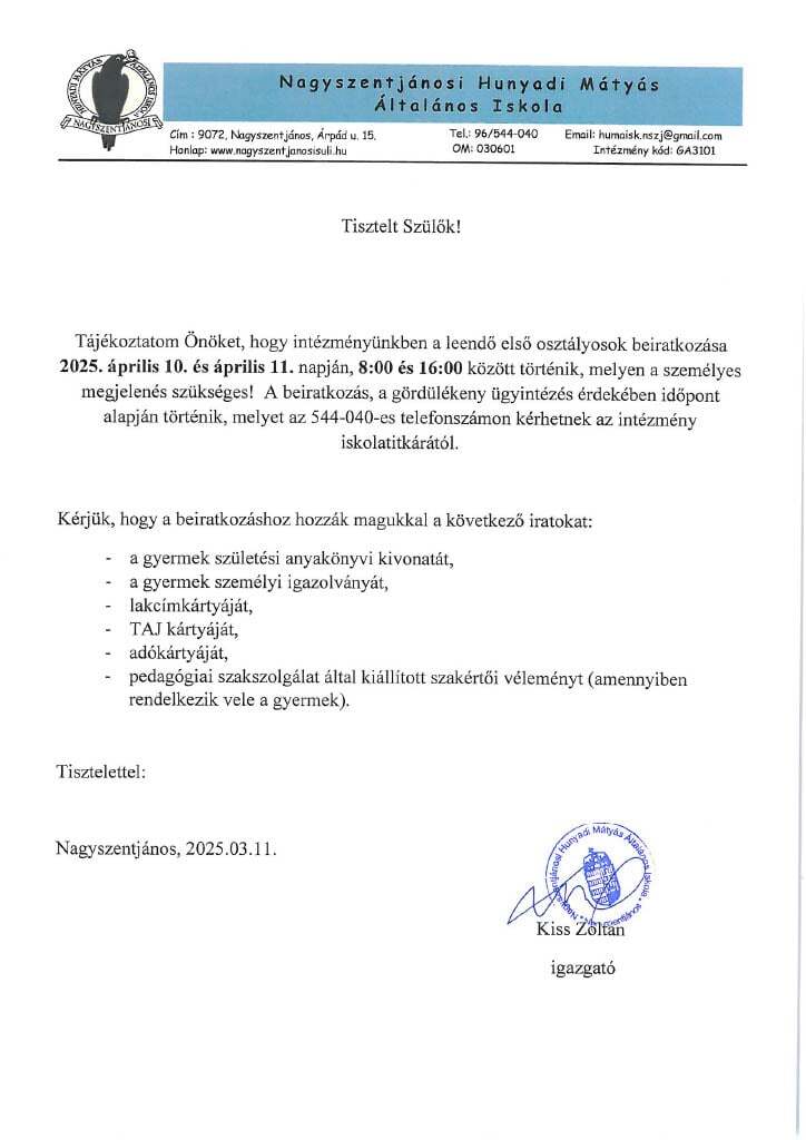OM azonosító: 030601 |   Cím: 9072 Nagyszentjános, Árpád u. 15. |   Telefon:(96)544-040 |   Email: humaisk.nszj@gmail.com