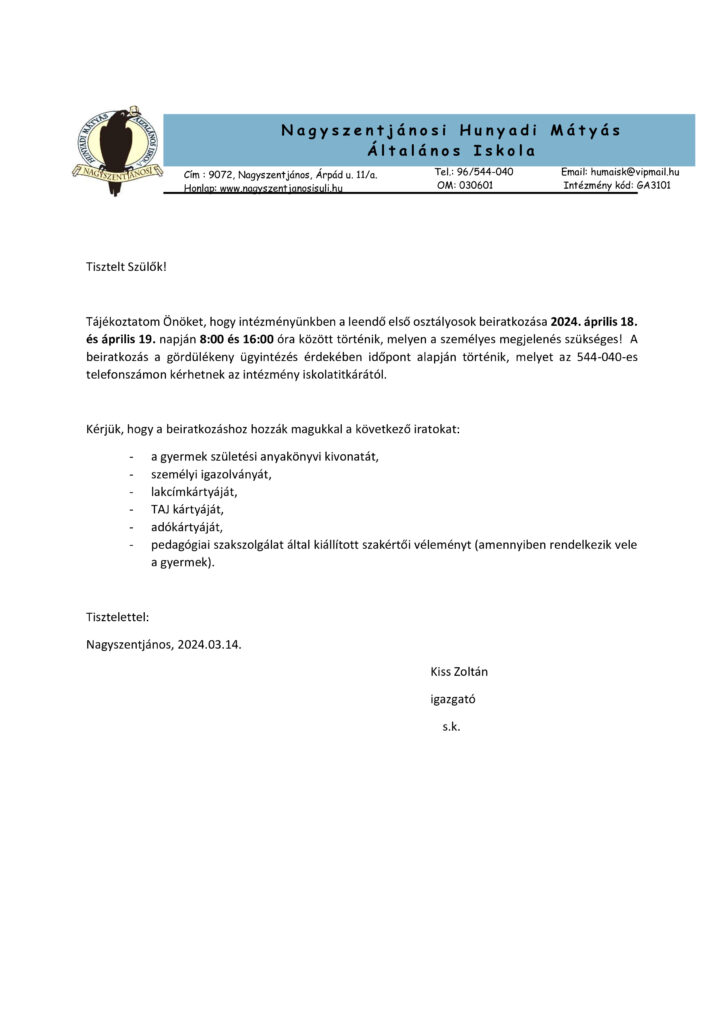 Nagyszentjános, 2024.03.01. Kiss Zoltán igazgató