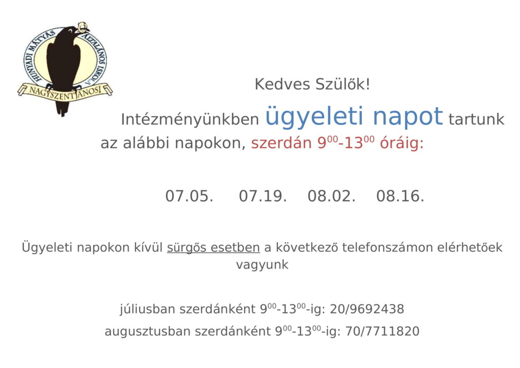 Intézményünk 7:00-tól 18:00-ig tart nyitva!